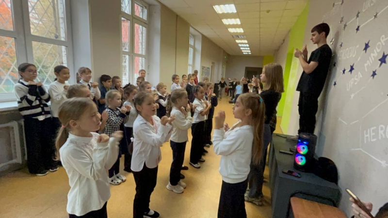 Продолжаем веселиться на «активных переменах»: на Чонгарском старшеклассники развлекают учеников начальной школы играми и танцами, а на Криворожской на переменах играют квизы и устраивают кибертурниры!